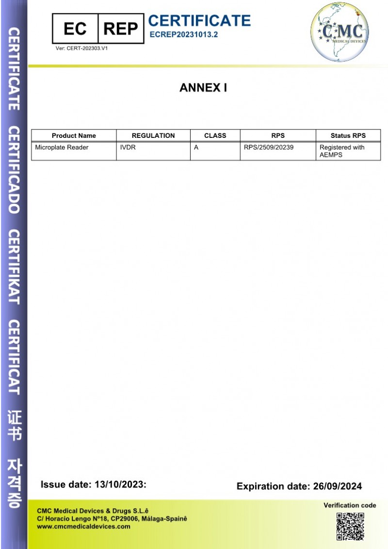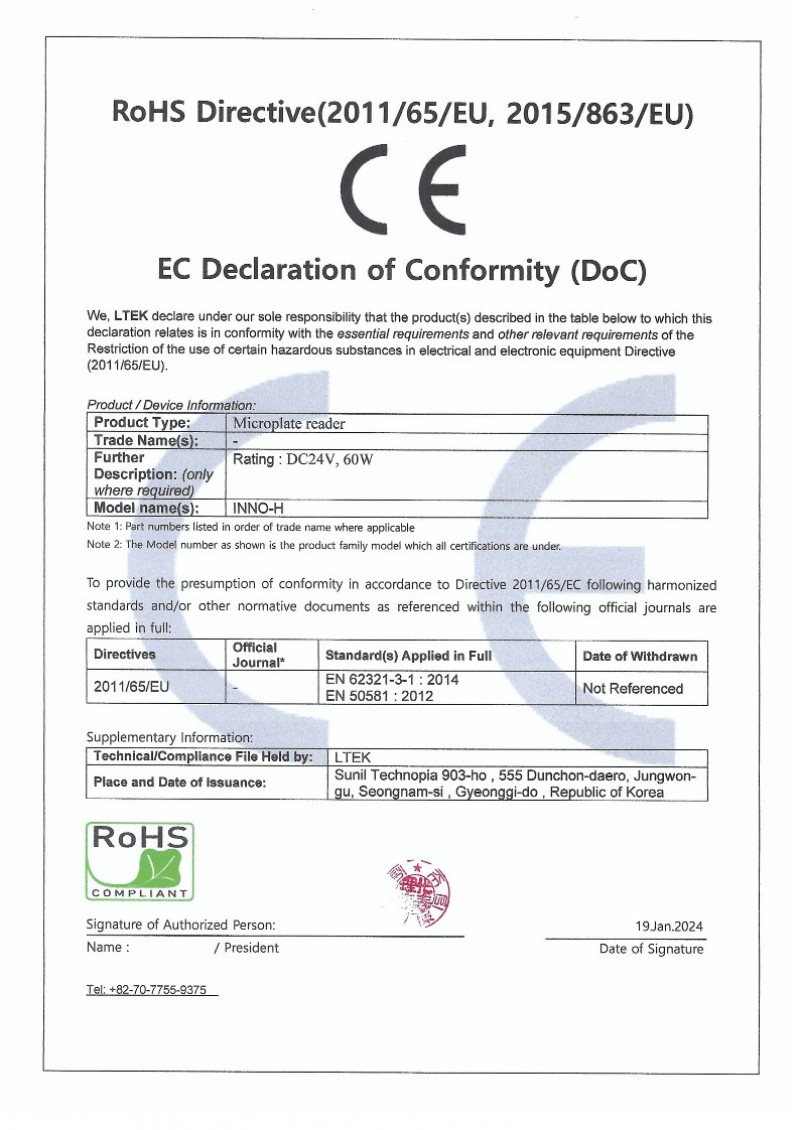 Certificate & Patents | Biomedical instrument manufacturer | Microplate Spectrophotometer, Luminescence reader, Luminometer | LTEK